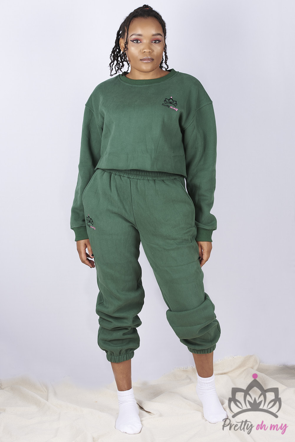 Our prettyohmy matcha sweatsuit eco-friendly chic casual set.sustainable fleece chic stylish set